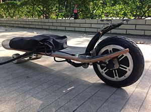滑板车采用“工”字形结构,加入单车握把,改用轮毂电机,还能折叠变小,运动背囊都可以容纳。
