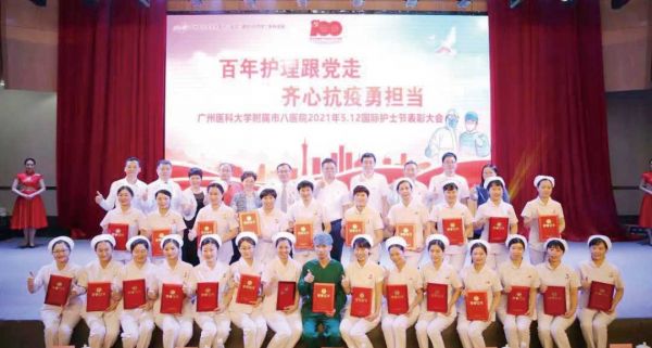 广州青年报讯(记者 胡媛媛)在迎接建党100周年暨第110个国际护士节之际,恰逢广州医科大学附属市八医院(以下简称广州八院)建院100周年,广州八院于5月8日隆重举办“百年护理跟党走 齐心抗疫勇担当”2021年5.12国际护士节庆祝活动暨表彰大会。大会在广州八院百年护理记录片《白衣护穗一百载,与党前行守盛世》的深情诉说中拉开帷幕。现场还进行了同步直播。