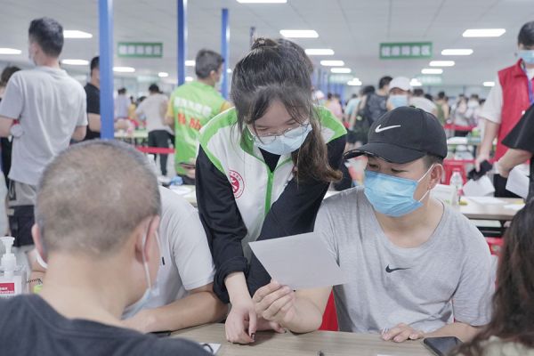 为配合当前疫情防控需要,从化区团委组织了一批经过培训的疫情防控应急青年志愿者到南方医科大学第五附属医院、江埔街社区卫生服务中心等疫苗接种点开展志愿服务,为群众提供测温、登记、引导、协助出示穗康码等志愿服务。5月27日至今,从化区共出动青年志愿者145人次,储备志愿者360余人,志愿服务时长共957小时,服务市民群众共约6650人次。