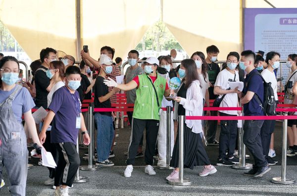 5月30日至6月1日,广州天河扩大核酸检测范围至重点区域,在8条街道开展大规模核酸检测,包括沙河街、五山街、员村街、石牌街、沙东街、棠下街、天园街、珠吉街辖内,户籍人口、来穗人员,争取在最短时间内实现重点区域的大隔离、大筛查,及时阻断病毒传播途径、切断感染链条。天河区团委组织志愿者奔赴8条街道增设的174个临时核酸检测点开展志愿服务,协助开展检测工作。