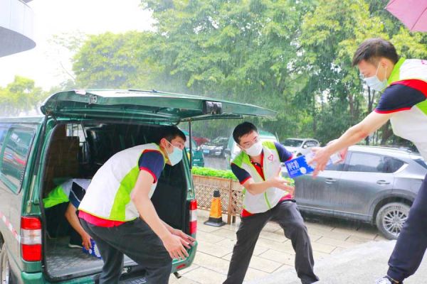 全市11个区的青年志愿者、志愿服务突击队、机团单位党团员突击队的输送物资,离不开“快递小哥”们,广州共青团向广州邮政“快递小哥”赠送八宝粥、饮用水、雨衣、遮阳帽等爱心礼包637份。