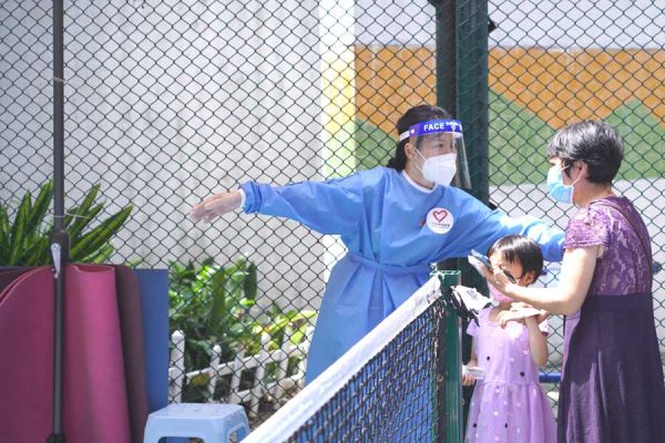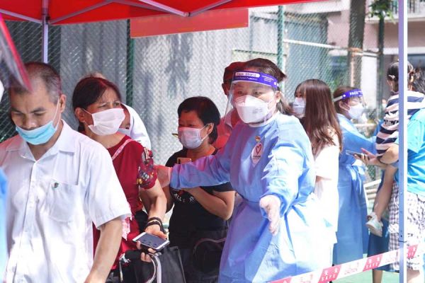 早晨八点,已是艳阳高照,团市委机关党员团员青年志愿者陆续达到支援社区,做好参与荔湾区战疫志愿服务的准备工作。在开展核酸检测志愿者通识培训和岗位实务培训及向荔湾区西村街道捐赠防疫物资后,由团市委书记徐柳、副书记王婵娟、段希、查晶晶同志分别带队,按照贴标登记岗、检测引导岗、轮护分流岗、秩序维护及测温岗和应急服务岗分工,到达指定位置开始一天的工作。
