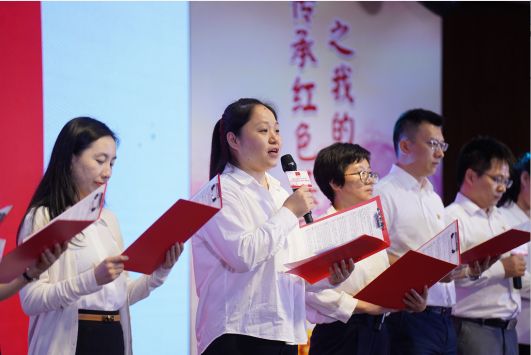 活动在慷慨激昂的集体朗诵中拉开帷幕。在发言讲述环节,获表彰为“两优一先”模范人物的优秀共产党员皮晶同志、优秀党务工作者付道康同志、先进基层党组织代表李荣新同志和脱贫攻坚工作代表杨权、林国康、金奇同志以及多名党支部书记先后上台发言。