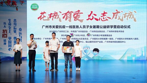 7月26日,由广州市总工会、共青团广州市委员会、广州市科学技术协会、广州市妇女联合会联合主办的“花城有爱 众志成城”广州市关爱抗疫一线医务人员子女暑期公益研学营在广州市第二少年宫举办开营仪式。来自广州市第八人民医院和广州医科大学附属第一医院的80名医护人员子女受邀参加此次研学营活动。