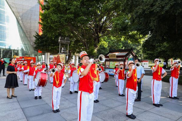 广州市少年宫积极创新课程体系和活动实践,推动多形式少年儿童素养教育与党史学习教育相融合,聚焦“童心向党”主线,策划推出“经典传承”“少年说”“暑期研学”“百诗征集”“共绘华章”以及科技周、主题队课、沉浸式音乐儿童剧等系列主题活动,引导少先队员传承红色基因、赓续红色血脉、厚植爱党、爱国、爱社会主义的情感。