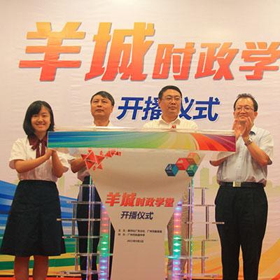 9月1日,由广州市教育局与新华社广东分社共同打造的时事教育视频专题片——《羊城时政学堂》,在广州市执信中学举行开播仪式。《羊城时政学堂》是广州市教育局联合新华社广东分社专门为广州市中小学生制作提供时事新闻内容的视频节目,节目每周播出一期,选取一周内国际、国内发生的热点新闻事件为主要内容,向同学们传递最新、最热的时事新闻、新闻故事等,并在节目中传播社会主义核心价值观,传递正能量,培养阳光、大气、有理想的下一代。同时,节目还针对中学生和小学生不同的知识结构、学习特点和接受能力,通过不同的栏目设置和内容推送,带领同学们“看”新闻、“读”新闻和“感悟”新闻。
