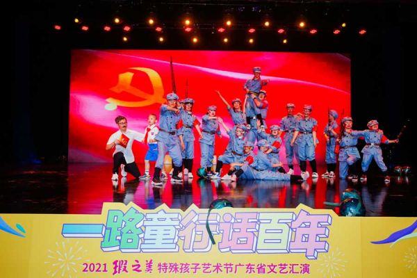 11月10日,“一路童行话百年”——2021“瑕之美”特殊孩子艺术节广东省文艺汇演录影在广州正佳大剧院举行。来自广东省内12个城市的18家机构、学校参加本次汇演。