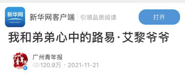 《我和弟弟心中的路易·艾黎爷爷》刊发后,本报在包括新华号在内的系列矩阵号进行了发布,引起各方关注,新华号一周内阅读量突破40万,此后每天以5万的阅读量快速传播,12月7日凌晨突破100万大关,成为本年度广青融媒传播一匹黑马。