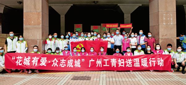 6月,由团市委、广州市总工会、市妇联等群团组织携手开展“花城有爱·众志成城”广州工青妇送温暖行动,通过送保障物资、送志愿服务等方式,依托采购或发动爱心企业捐助赠送快食产品、口罩等保障物资,发动参与志愿服务等支持荔湾等区开展全员接种疫苗和核酸检测工作。此次送温暖行动支援覆盖口罩、消毒液、食品等各类医用、日用物品,捐赠物资总价值达135万元。有效缓解荔湾区各镇街疫情防控物资压力,帮助一线防控人员解决后顾之忧。