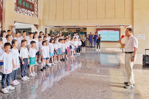 7月27日,作为“花城有爱 众志成城”广州市关爱抗疫一线医务人员子女暑期公益研学营系列活动之一,80位营员孩子们在广州医科大学越秀校区与国家卫健委高级别专家组组长、中国工程院院士、广州医科大学呼吸内科教授钟南山见面。钟南山亲笔为青少年题写“强国有我”的寄语。