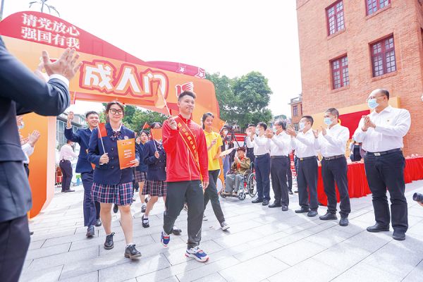 10月18日上午,为庆贺广州市新一代青少年成长为中华人民共和国的成年公民,由团市委等单位主办的“请党放心 强国有我”2021年广州市成人宣誓仪式在中共三大会址纪念馆举行。市内近10万名18岁青年通过线上和线下的方式共同参与一场终身难忘的青春“成人礼”!