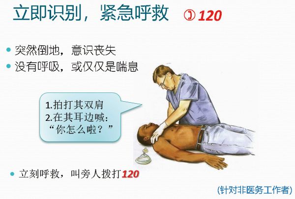 为什么重要:一般血循环停止4-6分钟大脑即发生严重的损害,复苏开始越早,存活率越高,4分钟内进行复苏者50%救活,4-6分钟开始者10%可以救活,超过6分钟存活率仅4%。10分钟以上开始进行复苏,存活率更低。