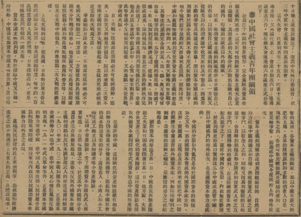文物【1】:《中国社会主义青年团纲领》(1922年5月15日第1版《先驱》登载)