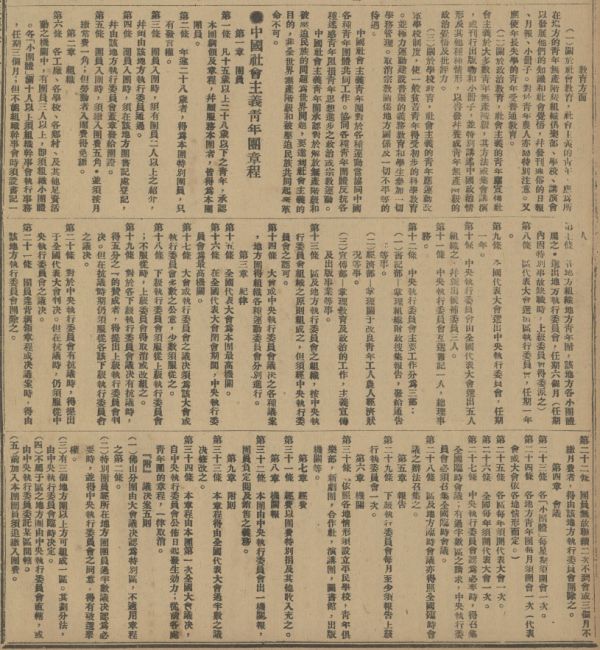 文物【2】:《中国社会主义青年团章程》(1922年5月15日第1版《先驱》登载)