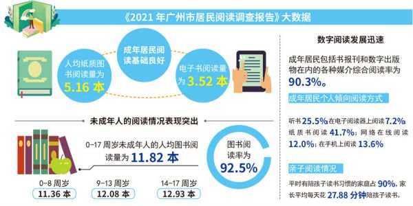 书香羊城全民阅读活动组委会办公室在3月31日正式公布了由中国新闻出版研究院组织调查的2021广州居民阅读调查成果报告,结果显示广州全民阅读综合实力显著。