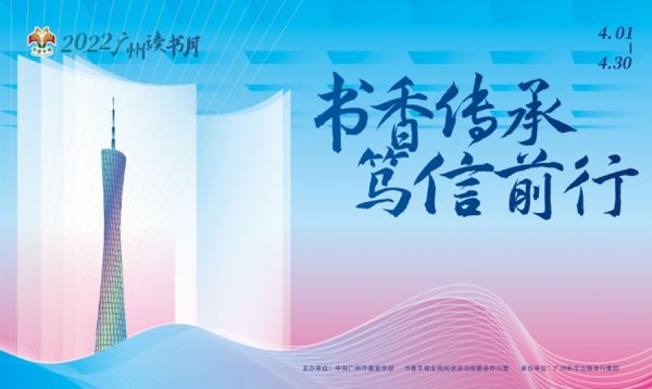 2022“广州读书月”以“书香传承 笃信前行”为主题,通过2022书香羊城十大好书评选、2022全民阅读推广大使选聘、“4·2国际儿童图书日”暨“广州读书月”未成年人阅读嘉年华、“‘悦’读伴成长 书香飘万家”亲子阅读、“学党史 传经典 推新作”读书沙龙、第四届“广佛同城共读”等各类品牌阅读活动点亮四月,营造书香。