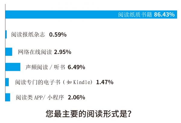 调查显示,阅读纸质书籍的人群占到调查人群的86.43%。纸质书还是青少年喜闻乐见的阅读载体。尽管当前电子阅读流行,但纸质书仍然在读者心中占有一席之地。参与者表示,阅读纸质书有更加直观的体验。相对于电子书,纸质书会更加传统,手拿起来就可以阅读,不用顾虑太多。而且纸质书体验更好,在读书时,存在需要做笔记情况,虽然电子书也可以作标注,但操作上就要麻烦一些,纸质书在记录方面拥有较明显的优势,并在回看时也很方便。纸质书的阅读还能为读者提供满足感,读书有时也是一种习惯,当每一本读过的书都摆在面前时,会为读者带来很强的满足感,增加读书的动力。此外,使用纸质书也更容易静心阅读,在电子设备尤其是手机上读书,很容易受到其他软件的干扰,导致阅读效率低下。而阅读纸质书则相对会受到外界干扰较少,比较集中。