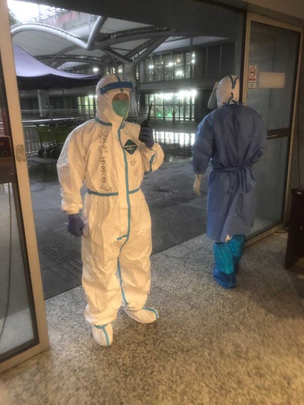 在工作当中还有一些难忘的经历,刚开始穿防护服的时候很不习惯,穿也不习惯,脱也不习惯。因为我身形比较健硕,穿的时候要穿很久,有时候会穿得比较松,有时候又很闷,因为穿的时间长,四五个小时,如果想去洗手间,只能忍,忍几个小时。有些同事甚至要用上成人纸尿裤,一用就用几个小时。到了后面,我基本上上班之前都不喝水不吃东西,但是一想到是为国家、为社会做贡献,自己心态调整一下,自我鼓励,就能克服。