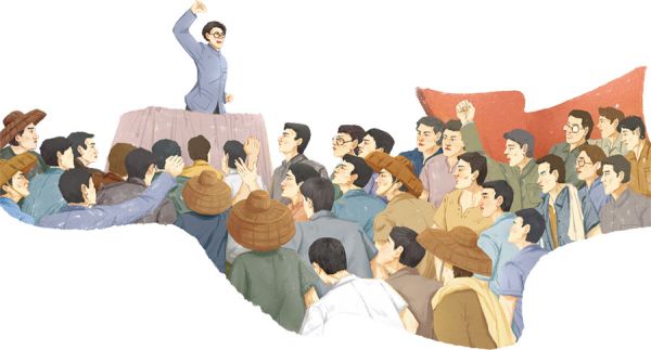 1922年5月5日下午1时,热火朝天的东园内会聚了1500多位参会者,团一大开幕式于万众期待中召开。开幕式首先由大会主席张太雷致辞。高喊着“社会革命万岁”的三声口号,滔天声浪传递着青年们的热血斗志和投身革命的坚定信念。