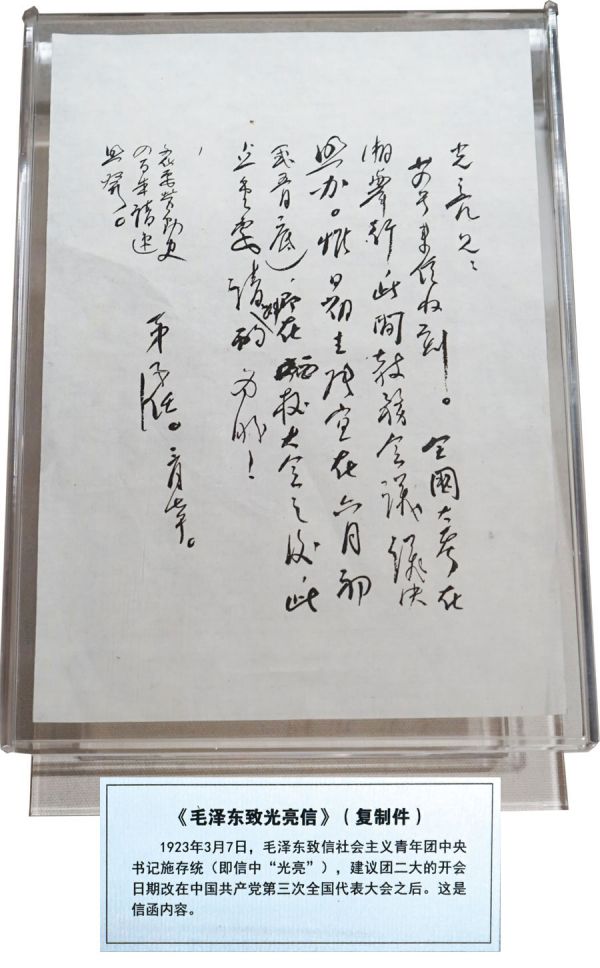 1923年3月7日,毛泽东致信青年团中央书记施存统,建议团二大的开会日期改在中共三大之后。这是信函内容。