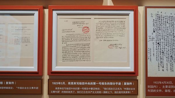 这是1923年3月,周恩来写给团中央的第一号报告的部分手迹。报告中周恩来豪迈地说:“我们现在已正式为‘中国社会主义青年团’的旅欧战员了,我们已立在共产主义的统一旗帜之下,我们是何其荣幸!”