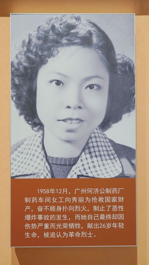 向秀丽是广州何济公制药厂车间的一名女工,为挽救国家财产英勇牺牲,被评为“100位新中国成立以来感动中国人物”。向秀丽烈士的精神一直是广州各级团组织学习的榜样精神。纪念馆中展示了向秀丽生前的入团鉴定表。