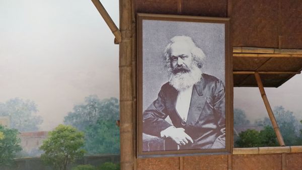 竹棚中的马克思画像。