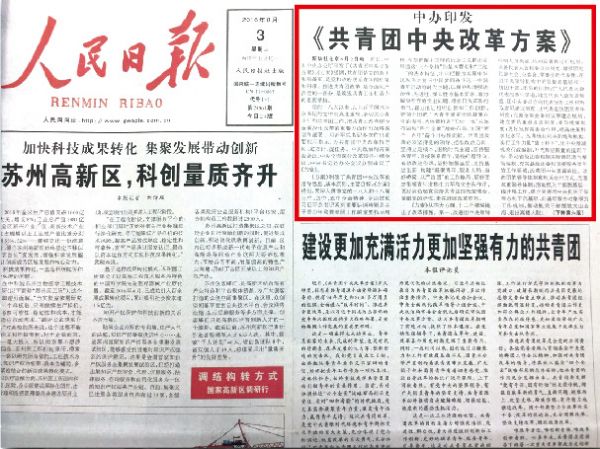 2016年8月,中共中央办公厅印发《共青团中央改革方案》。方案从四大方面、十二个领域提出了改革措施,并强调:共青团是党的助手和后备军,是党和政府联系青年的桥梁和纽带。
