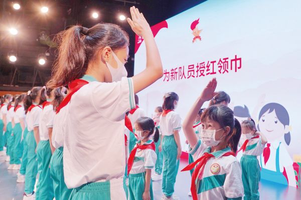广州青年报讯(见习记者 王晨辉 通讯员 穗团宣)为迎接党的二十大,深入学习贯彻习近平总书记在庆祝中国共青团成立一百周年大会重要讲话精神,鼓励全市少先队员树立远大志向,争做新时代好队员,由团市委、广州市教育局、广州市文明办、广州市少工委主办,各区团委、教育局、少工委协办的2022年“喜迎二十大,争做好队员”广州市少先队新队员集体入队仪式主会场活动在广州市第二少年宫演艺厅举行。