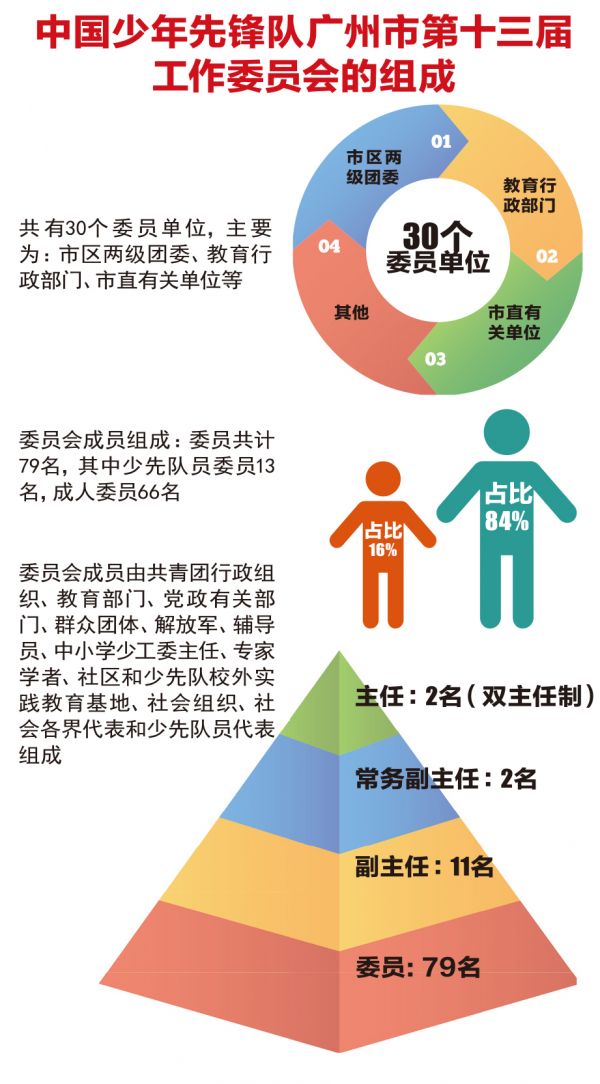 此外,广州还将推动少先队工作纳入中小学党建工作总体规划,将少先队工作纳入各级中小学校党建督导考核;将少先队工作纳入义务教育质量评价工作;简化少先队校内外实践活动开展审批流程。提升少先队社会化工作水平,打造“家门口的少先队”,形成“学校—青少年宫—社区—校外阵地”全方位少先队工作链条,努力形成全社会共同关心支持少先队工作的良好局面。