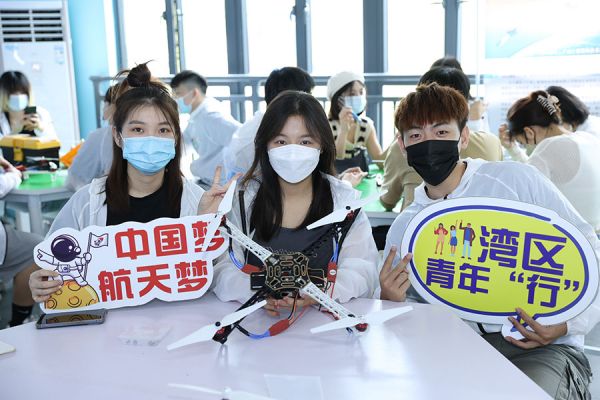 在北斗航天展内,工作人员从中国人的飞天梦、风云卫星故事引入,讲述“祝融”探火、“羲和”逐日、“天河”遨游星辰到中国空间站建立,向穗港澳青年描绘了中国航天事业的伟大征程与探索成果。在组装无人机时,工作人员详细讲解了各类零部件的加工参数和工艺流程,让穗港澳青年对无人机技术有了更直观和生动的认识。在实操飞行中,穗港澳青年自行探索,对无人机进行编程、操控、表演等操作,大呼过瘾。