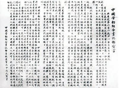 1921年7月,代表着工人阶级利益的中国共产党成立。同年8月11日,由党领导工人运动的第一个公开机构——中国劳动组合书记部在上海成立,并在后续于汉口、长沙、广州等设立分部,包惠僧、毛泽东、谭平山等人分别担任负责人。