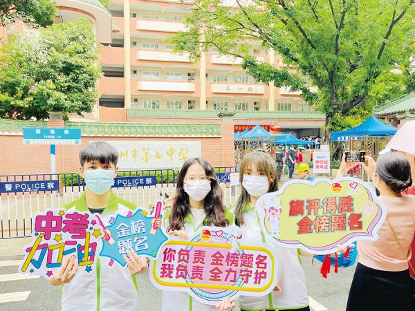 广州青年报讯(见习记者 王晨辉 通讯员 穗团宣)6月20日上午,2022年广州市中考如期拉开序幕。为帮助考生营造轻松便利的考试氛围,创造安心舒适的考试环境,团市委会同各团区委、广州公交集团团委、广州地铁团委、广州志愿驿站联合会、广州青年志愿者协会,开展“助力平安中考”志愿专项服务活动,组织全市512名青年志愿者在全市19个考点提供站点助考、心理减压、爱心送考等六个方面的志愿服务,做考生的“加油站”“心灵按摩师”“护航员”“引导员”和“保护伞”,为全市中考学生加油。