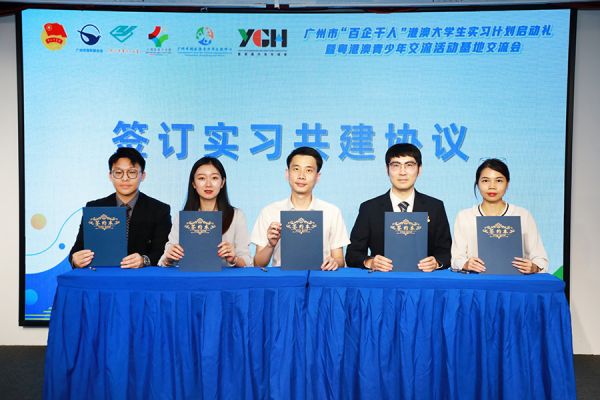 仪式上,广州市穗港澳青少年交流中心与广电运通、正佳集团、“九毛九”、凯创商务四家企业签订共建合作协议,推动港澳青年来穗实习计划深入开展,促进优势互补、资源共享、合作共赢。