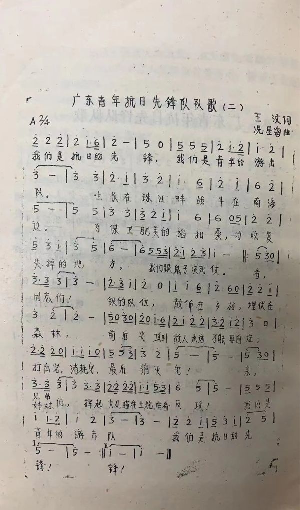在广州,这群年轻人成为抗日先锋 。“我们是抗日的先锋,我们是青年的游击队。生长在珠江畔,战斗在南海边,为保卫肥美的稻和桑,为收复失掉的地方,我们跟鬼子决死仗 ”这首歌曲由冼星海亲自谱曲,是一首激情昂扬的战斗之歌,是广东青年抗日先锋队队歌。