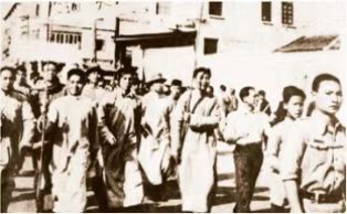 1935年,北平“一二·九”运动后,广州青年学生热烈响应举行抗日示威大游行。