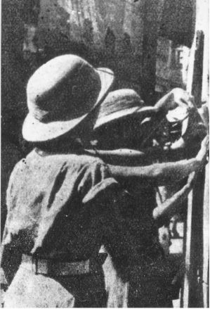 驻守宛平城的中国军队奔赴卢沟桥抵抗日军。