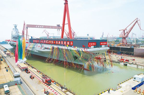 2022年6月17日,我国第三艘航空母舰下水命名仪式在中国船舶集团有限公司江南造船厂举行。经中央军委批准,我国第三艘航空母舰命名为“中国人民解放军海军福建舰”,舷号为“18”。