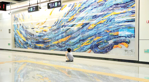 穿过高耸的现代建筑走进深圳地铁荔湾站,一片湛蓝涌动的“海”向墙而生,层层叠叠的“海浪”拍打着、涌动着、闪烁着……如果这扑面而来的“浪”让你不由地放慢匆匆脚步,就会发现这闪烁的是瓷的光,涌动的是瓷的瓦。