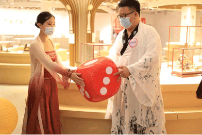 当晚,以七夕文化为主题的单身青年交友活动火热开展。不同于以往的相亲方式,活动设置了七夕文化场景、汉服变装秀、古风传统游戏等环节,让单身青年一秒“穿越时空”,他们身着汉服,化身翩翩佳公子与如花美娇娘,结对参与投壶、蹴鞠等传统趣味游戏,在玩乐中拉近彼此间的距离,沉浸式体验了一场别样的古风相亲交友会,感受优秀传统文化。
