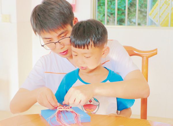 “老师,这个地方要上颜色好看。”“老师,这个风车要怎么画?”“老师,能不能教我们唱歌?”在艺术课上,志愿者利用自身的艺术特长,从绘画、音乐、折纸等方面提高孩子们的动手能力及创造力。