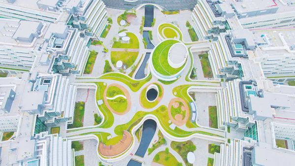记者了解到,港科大(广州)的学校占地面积约1669亩,工程项目分为两期进行建设。目前一期用地面积约716亩,一期总建筑面积约53.6万平方米(不含地下室)。在校园设计上,港科大(广州)结合自然景观与建筑,在建造过程中融入节能、环保的关键性前沿技术,致力于将校园打造成为绿色、智慧、“碳中和”的新标杆。
