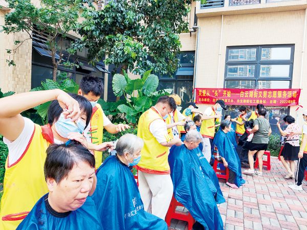 关爱从“头”开始。在义剪服务区,众多居民群众耐心有序地排队等候8名青年理发师志愿者为他们提供义务剪发服务,疫情防控、垃圾分类宣传摊位也吸引了大量居民参与,活动发放“争创文明城市”倡议书和《广州市文明市民手册》,他们边参加小游戏互动,边学习疫情防控、垃圾分类知识,创文知识问答等互动活动,让“创文”理念更加入脑入心。