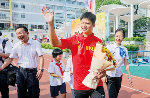 苏炳添来到华师附小,受到师生热烈欢迎 杨泽彬/摄