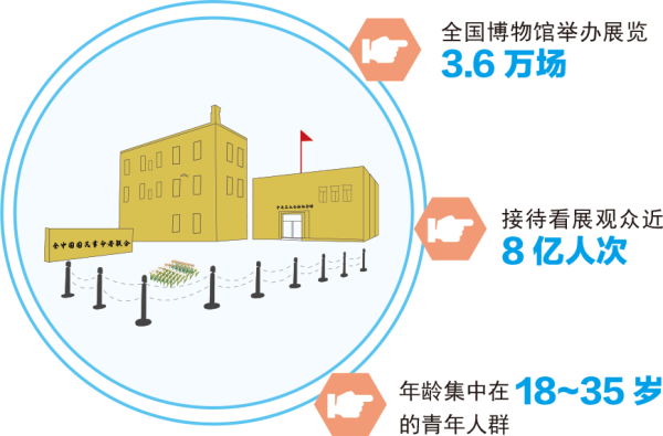 随着“看展式社交”的逐渐兴起,博物馆、展览馆等地也逐渐成了青年群体结伴外出时的首选。据“中国这十年”系列主题新闻发布会发布数据显示,2021年,全国博物馆举办展览3.6万场,接待看展观众近8亿人次,其中占比最大的群体就是年龄集中在18~35岁的青年人群。