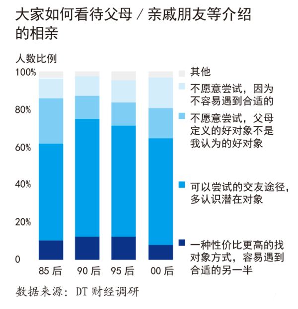 事实上,由长辈充当“红娘”“红叔”为年轻人牵线搭桥的形式并未过时。据《白皮书》调查数据显示,有超过七成具有恋爱意愿的90后受访青年接受由父母介绍的相亲、联谊活动。