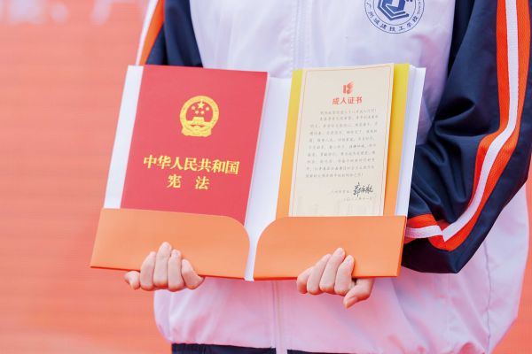 随后,在现场活动人员的见证下,师长、家长为学生代表颁发了《中华人民共和国宪法》和《青春手册》(内附市长亲笔签名的《成人证书》)。这是全市所有18岁青年的专属成人礼物,象征着对青年们能在未来自立自强、承担宪法和法律所要求的义务的期许。