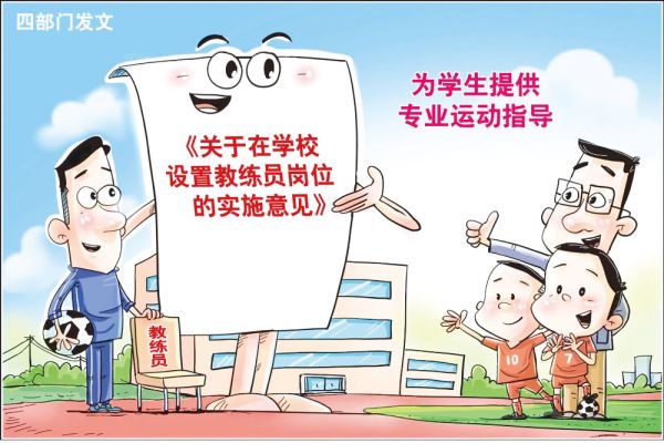 近日,国家体育总局、中央机构编制委员会办公室、教育部、人力资源和社会保障部等四部门联合出台了《关于在学校设置教练员岗位的实施意见》(以下简称《意见》),提出义务教育阶段学校、普通高中、职业院校和普通高校可根据工作实际,设立专(兼)职教练员岗位。