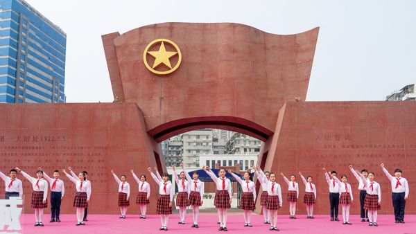 表演结束后,少先队员们走进团一大纪念馆,对照书中的经典观史料听故事,近距离感受团一大的红色历史氛围,革命青年的英雄事迹历历在目,他们的青春故事也深深鼓舞着现场的每一位少先队员,激励着他们奋发图强、展现新时代少年风采。