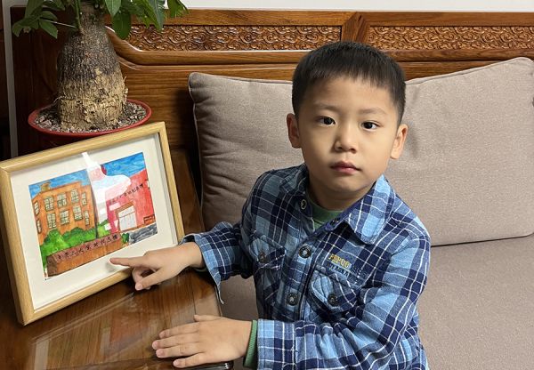 弟弟张钊浩对我的通草画《中共三大会址纪念馆》爱不释手,今年他上小学后也师从苏昕老师系统学习通草画。